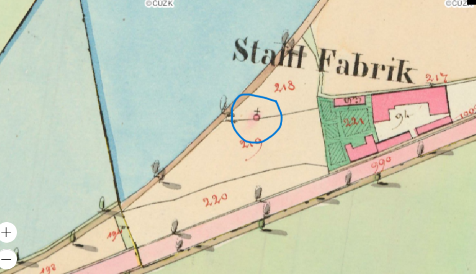- stabilní katastr: indikační skica, originální mapa, císařský povinný otisk (1841), výřez, srovnávací mapa (zakliknout 1842), [50°05˙55¨, 14°27˙55¨],
