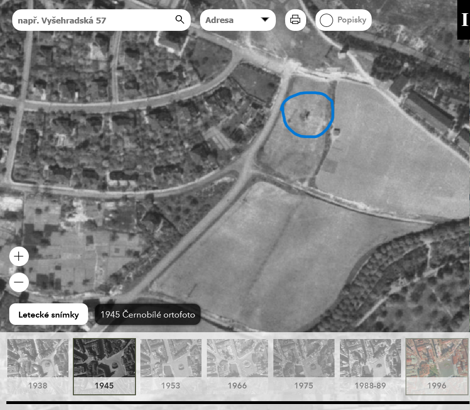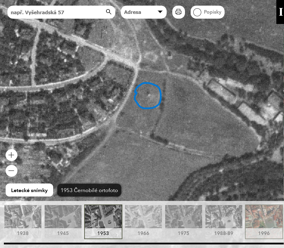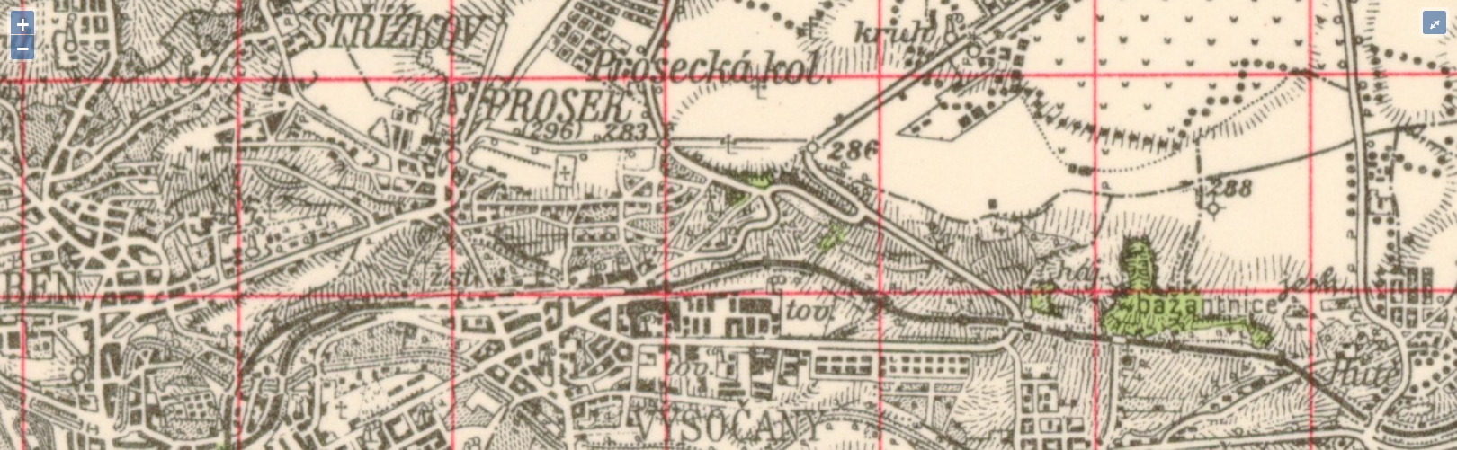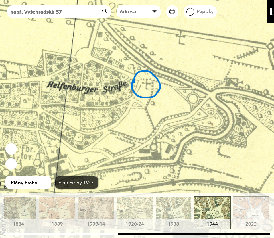 - plán Prahy (1944): výřez, porovnávací mapa - zakliknout 1944,