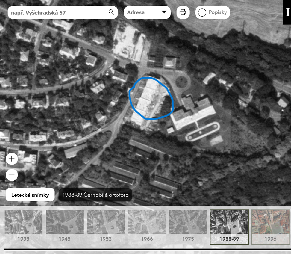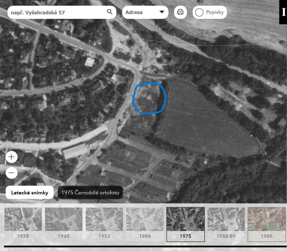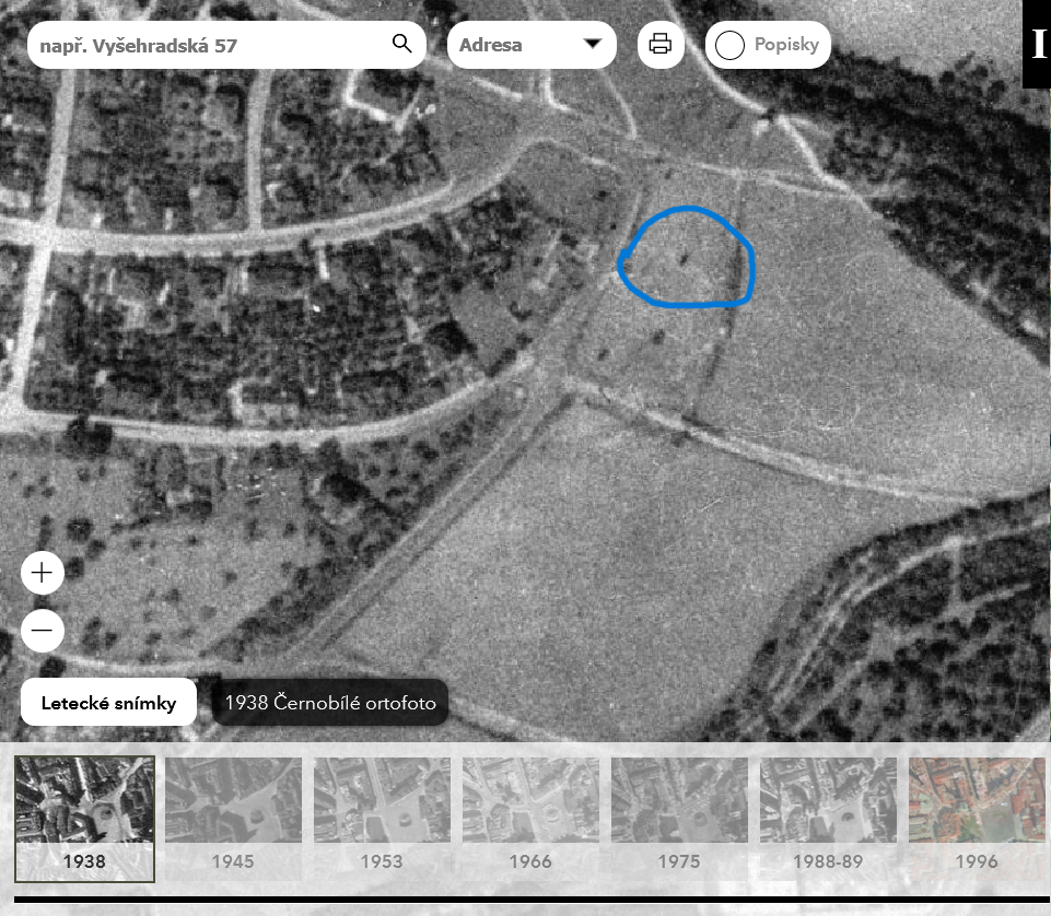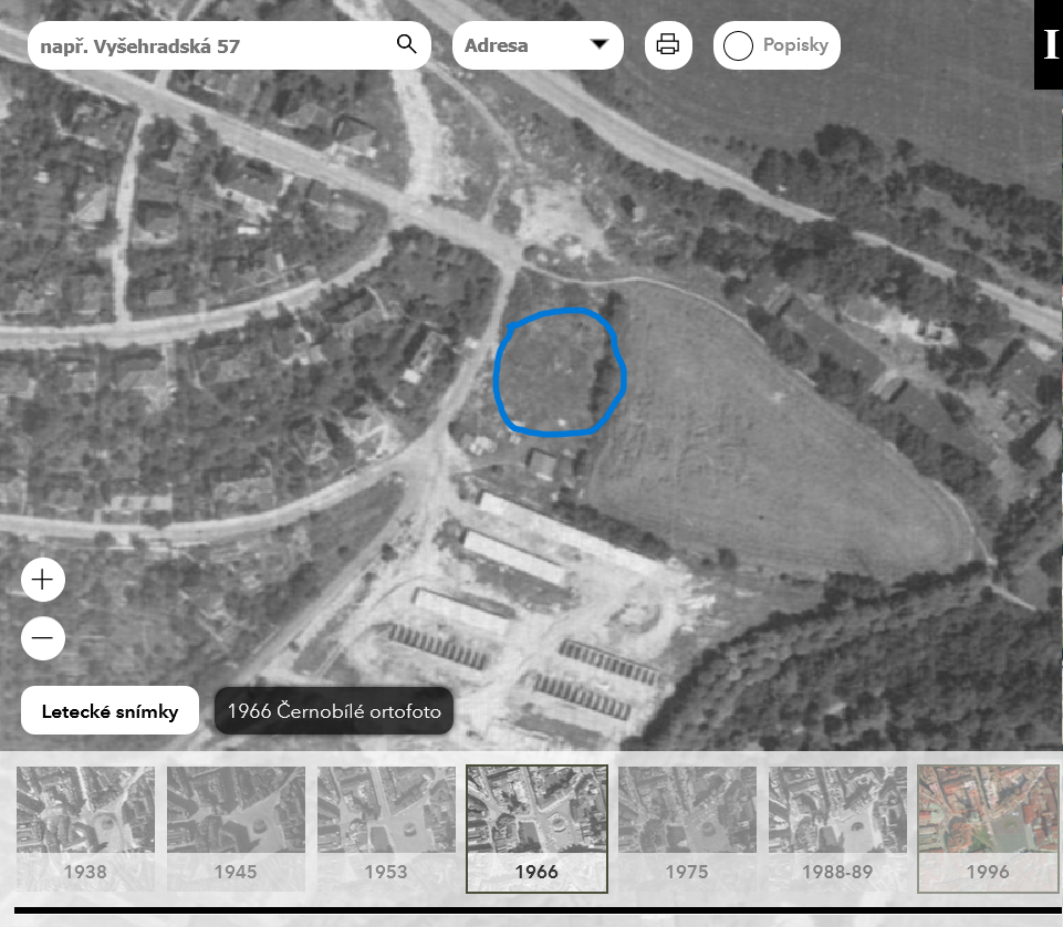 - plán Prahy (1944): výřez, porovnávací mapa - zakliknout 1944,