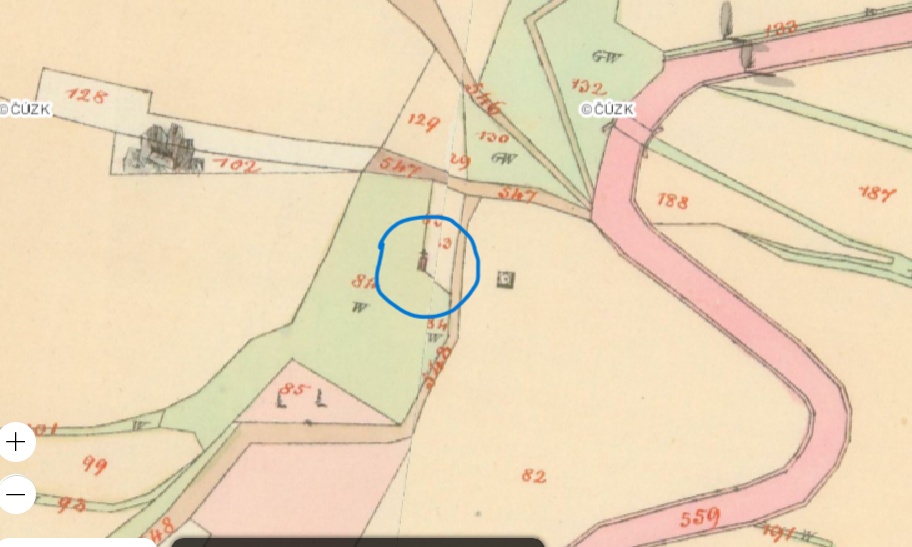 katastru (výřez, mapa - zakliknout 1842) [50°6'59"N 14°30'42"E],