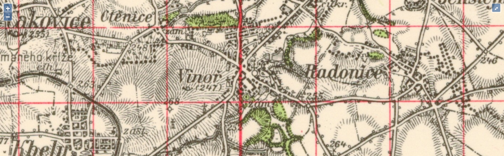 - I. vojenské mapování (1764-1783): výřez, mapa, velká mapa,