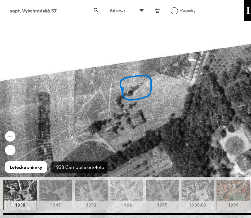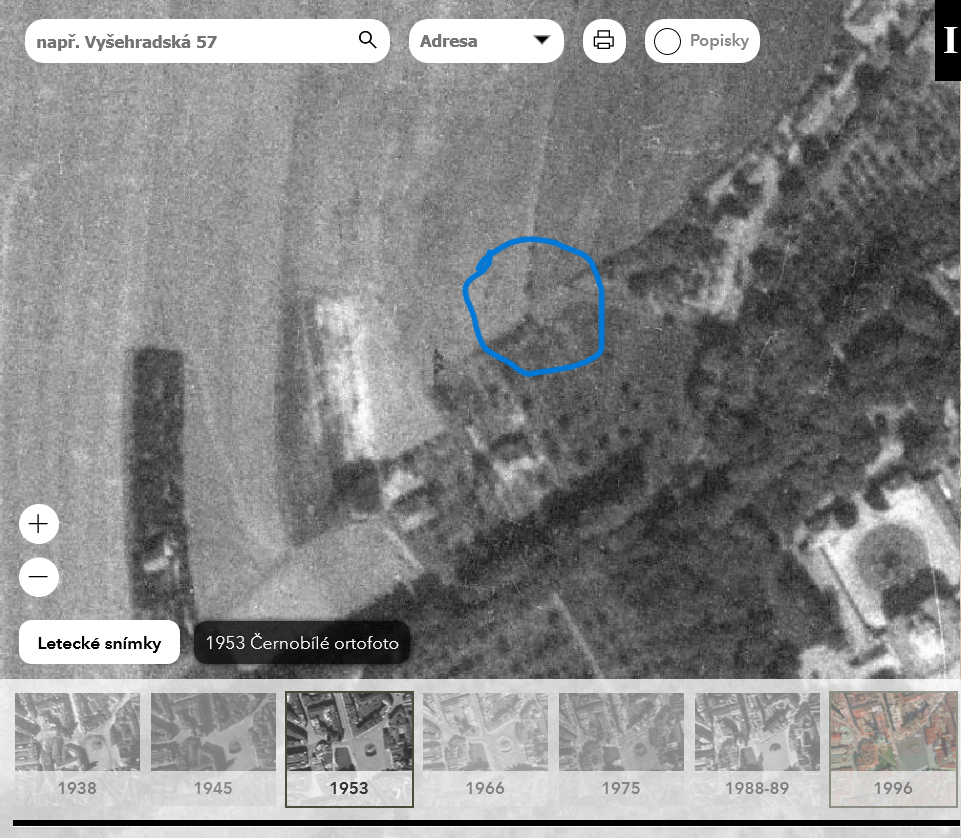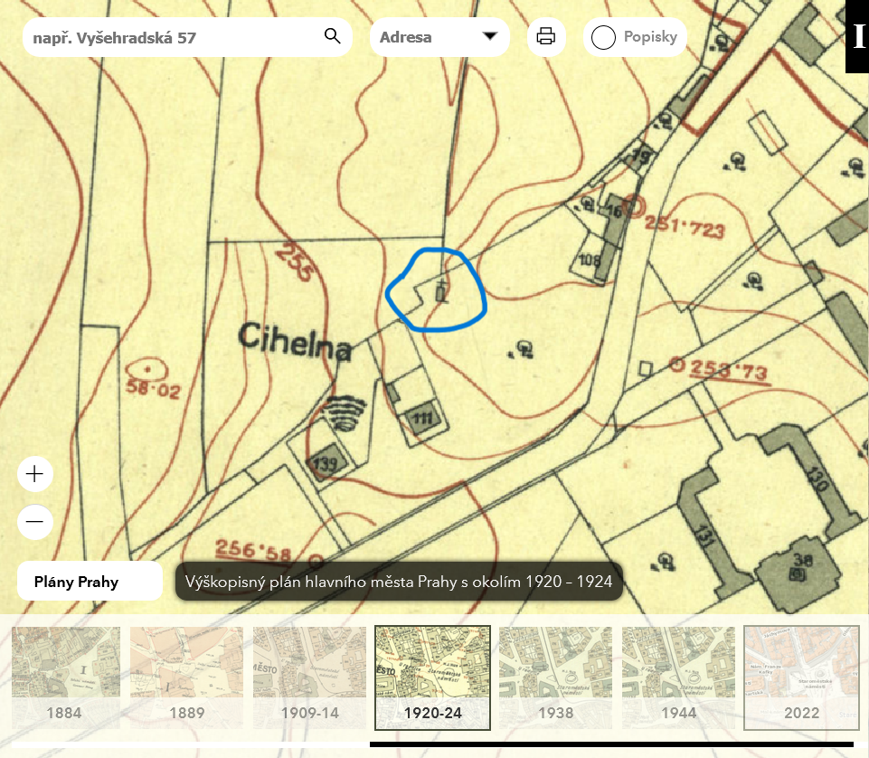 - výškopisný plán Prahy (1920-24): výřez, srovnávací mapa - zakliknout 1920-24,